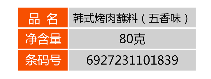 > 燒烤系列 > 韓式烤肉蘸料(五香味)